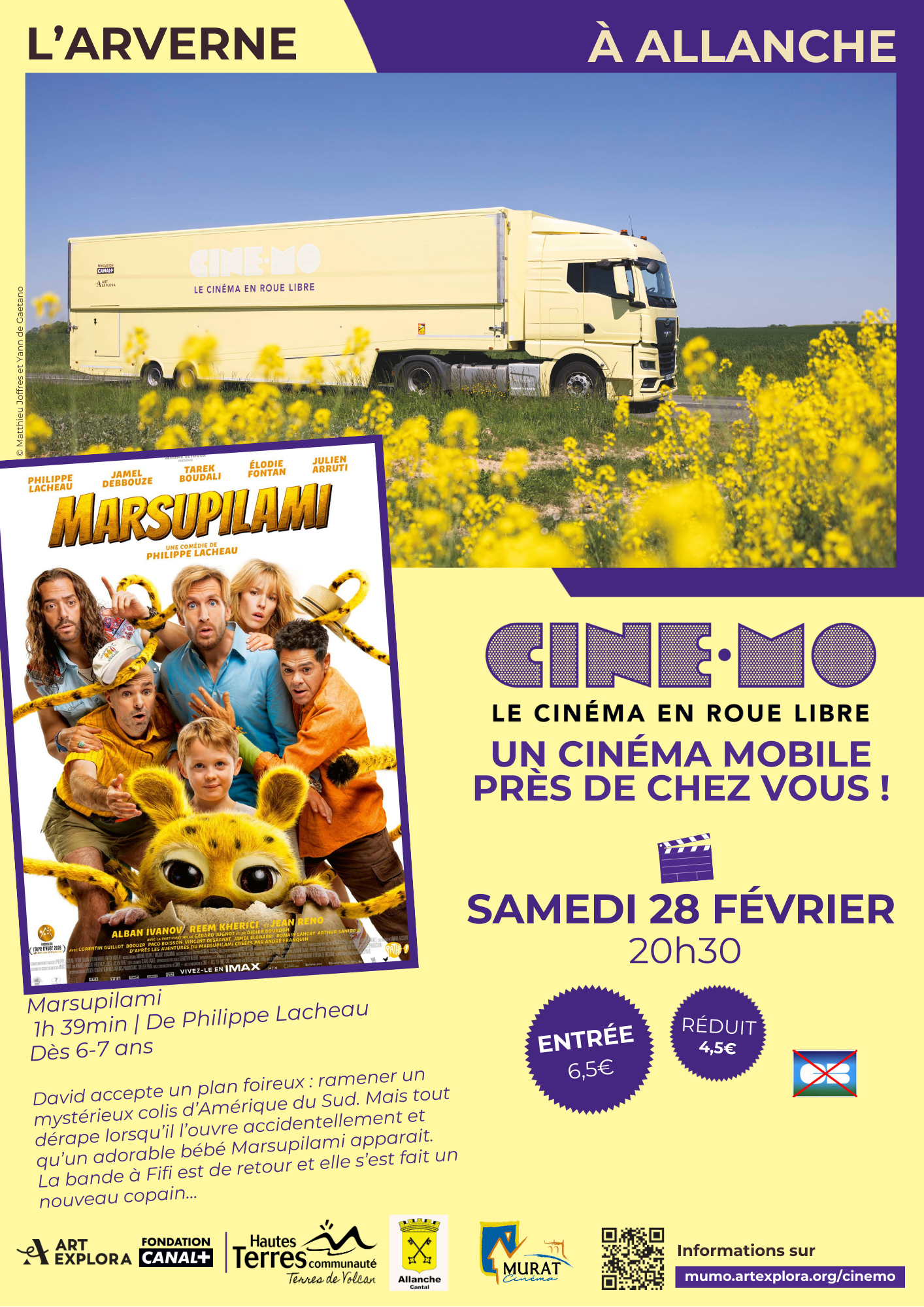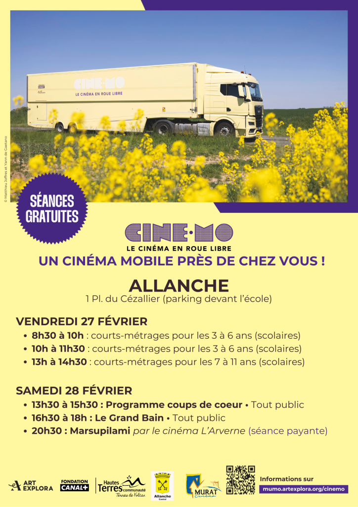 La tournée régionale du CinéMo, camion cinéma itinérant de la Fondation ArtExplora, parcourra pendant 15 semaines la région Auvergne-Rhône-Alpes, en faisant étape dans le Cantal du 24 au 28 février 2026 à Allanche et Marcenat.