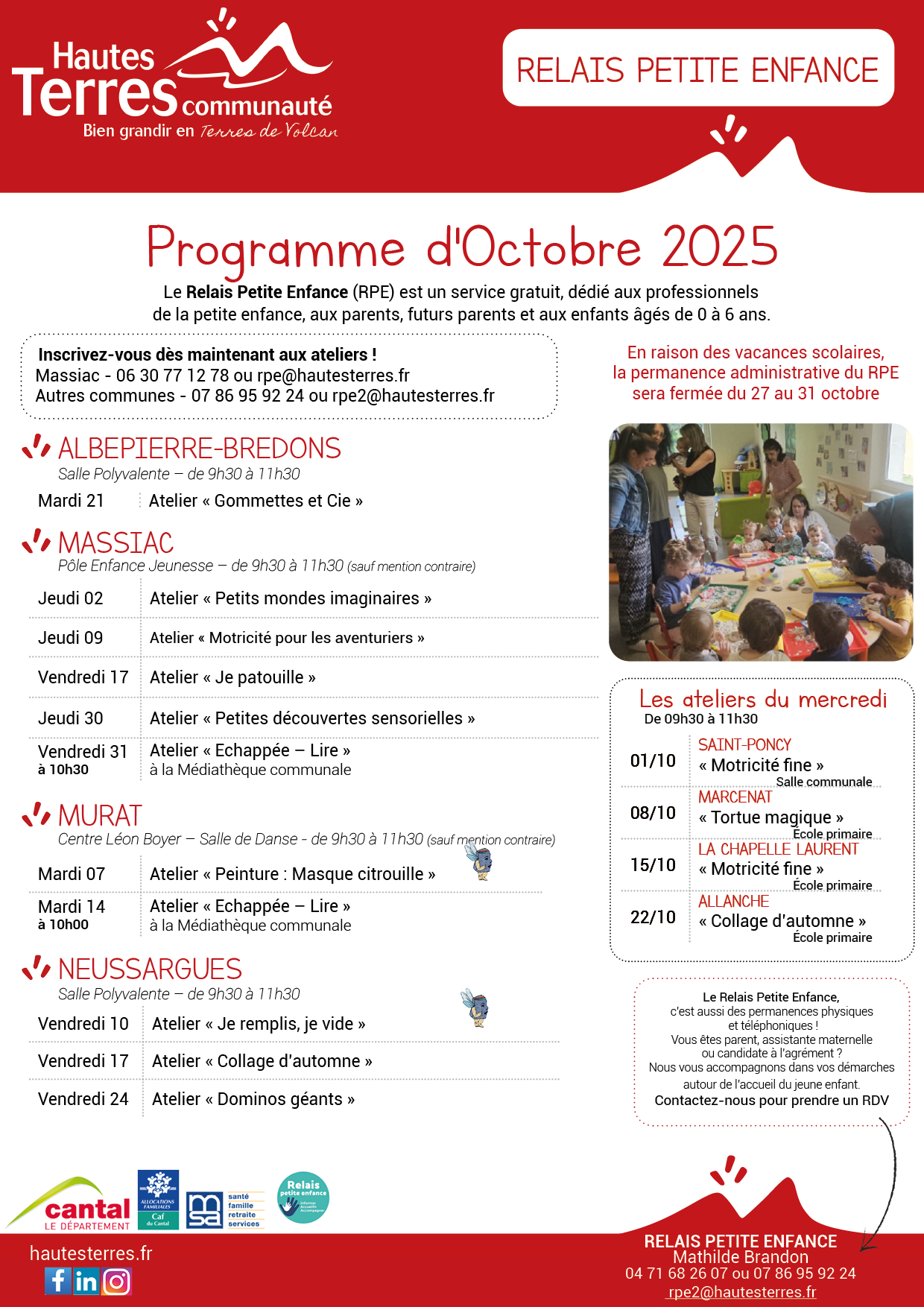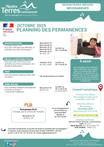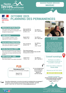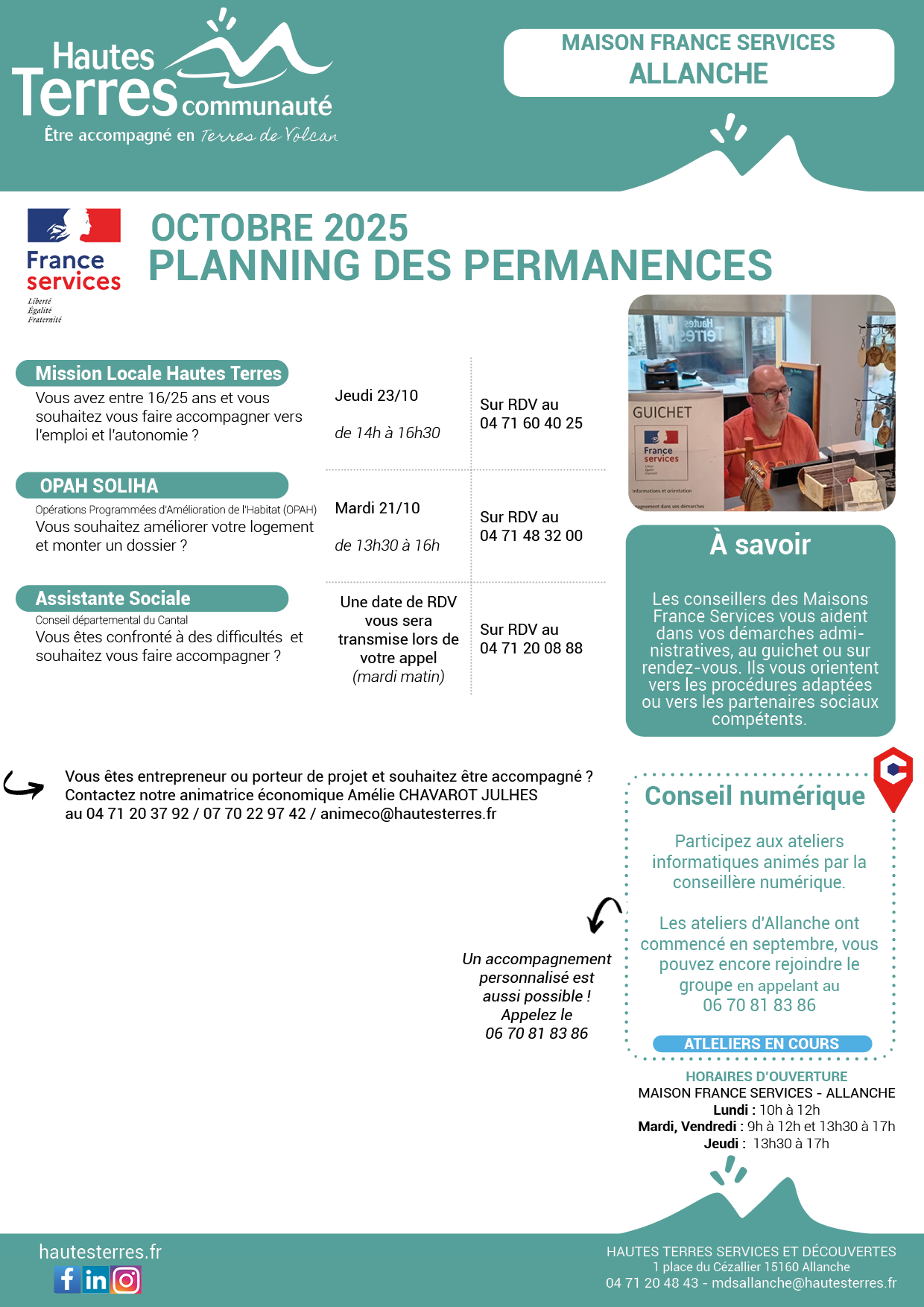 Retrouvez le planning des permanences et des ateliers sur le territoire de Hautes Terres Communauté.