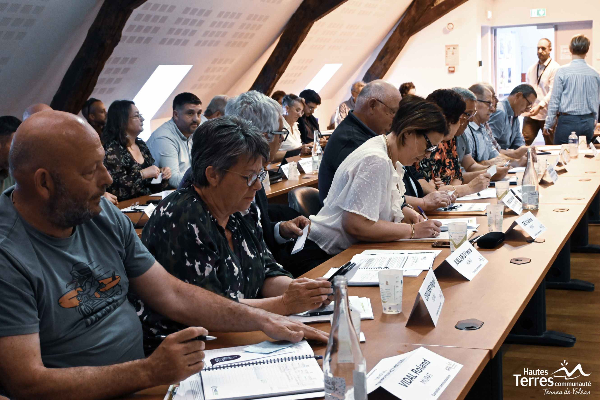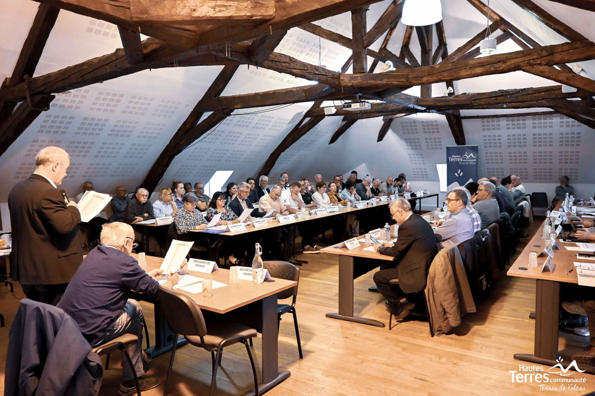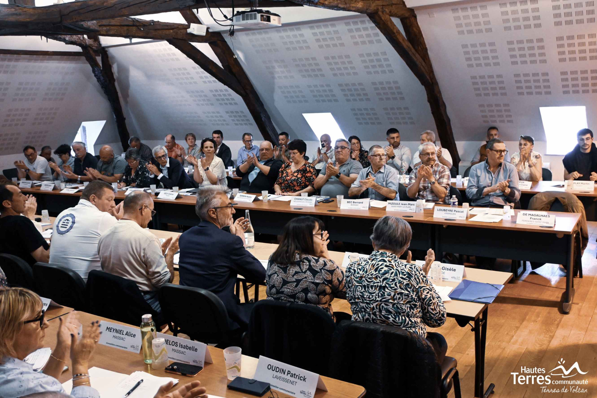 Sous la présidence du doyen d’âge M. Jean Rongier maire de Joursac, l’élection de la nouvelle présidence a eu lieu. M.Didier Achalme, président sortant, était le seul candidat. A l’issue du scrutin, les membres du Conseil communautaire ont élu M.Didier Achalme, Président sortant, avec 54 voix pour, en qualité de Président de Hautes Terres Communauté.