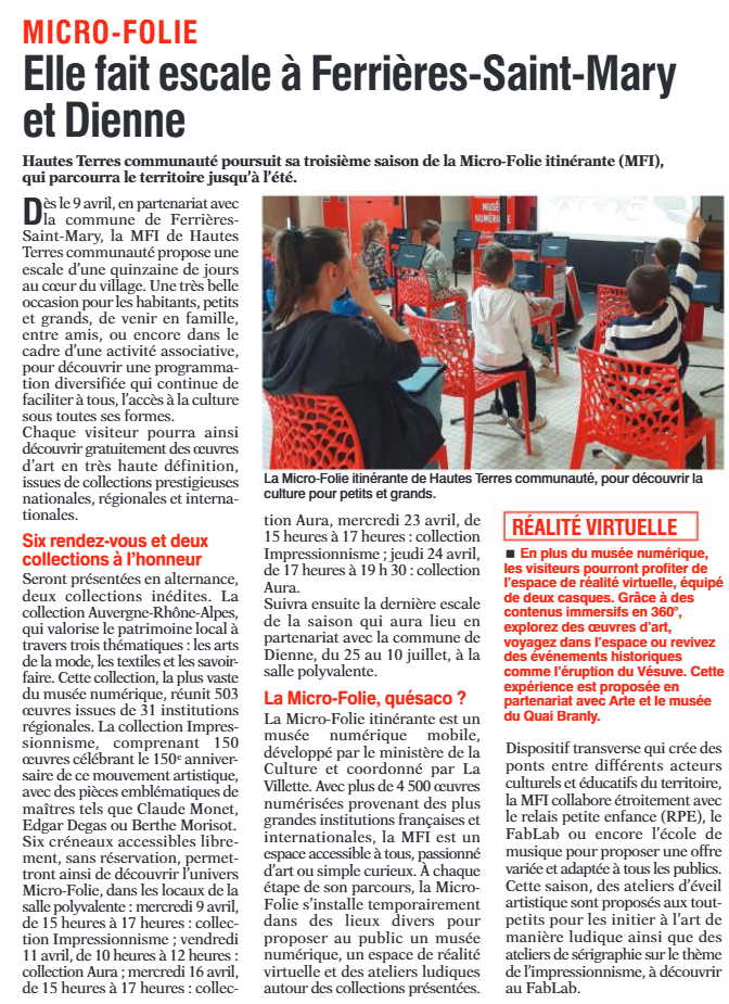 L’Union du Cantal – Micro-Folie – Elle fait escale à Ferrières-Saint-Mary et Dienne