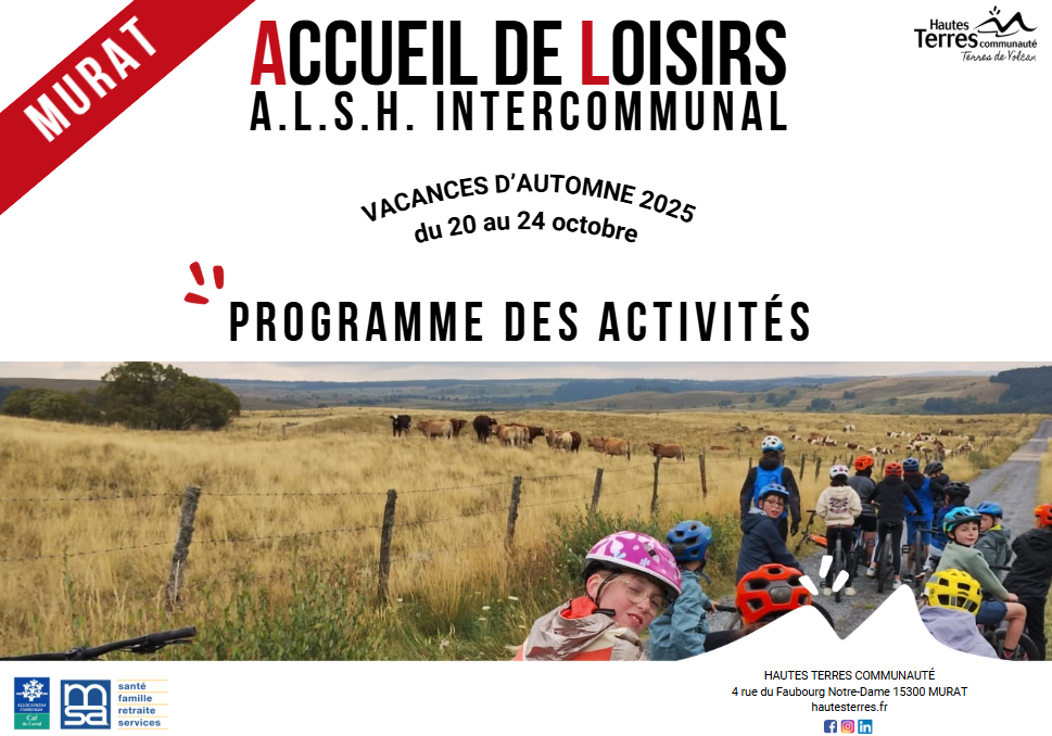 L’équipe de l’Accueil de Loisirs multisites intercommunal (ALSH) propose de nombreuses activités aux enfants âgés de 3 à 12 ans, pendant les périodes de vacances scolaires, sur le territoire de Hautes Terres Communauté.